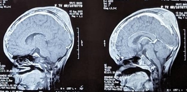 Figure 3: MRI brain (sagittal view) showing calverial metastasis
