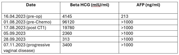 She had completed another 2 cycles of Etoposide and Carboplatin in due course till October 2023. She was improving gradually both symptomatically as well as biochemically, though the AFP level was persistently high.