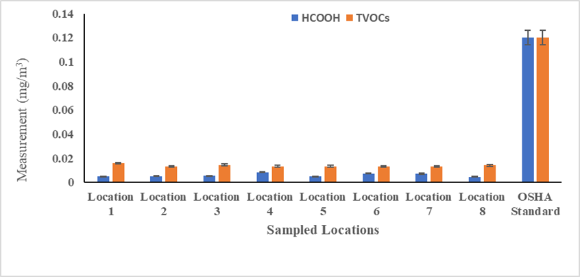 Fig 4: Formaldehyde and Total Volatile Organic Carbon across the eight locations
