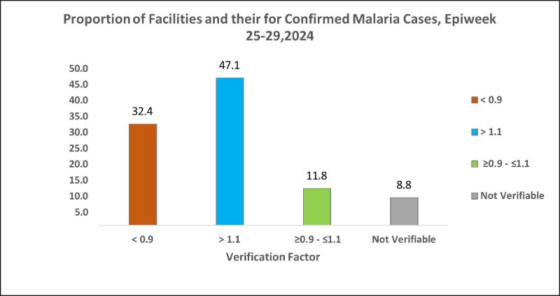 Data for DQA were collected using the routine data quality assessment (rDQA) tool, which is a standard tool. The tool was slightly modified to allow the collection of weekly reported data for the Epiweek 25 through Epiweek 29, 2024, from selected health facilities for the following variables: