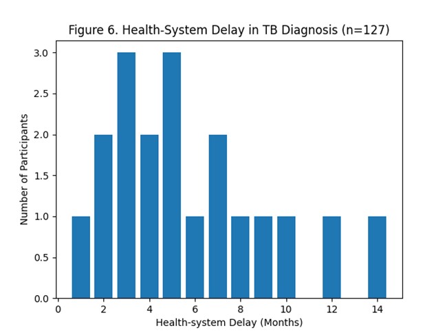 Patient delays were substantial, with nearly one-third of participants delaying care for 2–3 months and an additional one-third delaying for more than five months. These delays indicate that symptom recognition and prompt health-seeking remain major challenges. Consistent with regional studies, self-medication and underestimation of TB symptoms likely contribute to these delays.