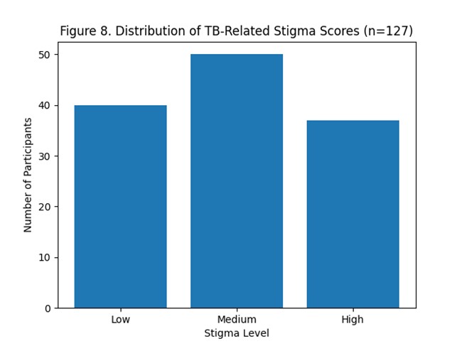 Psychological and social responses were profound: 66.9% (n = 89) felt scared upon diagnosis, while an overwhelming 96.9% (n = 123) perceived TB-related discrimination in their communities. Similarly, 96.1% (n = 122) believed that TB medication should be free.