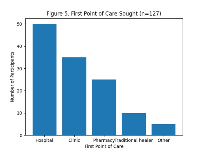 The multvariable analysis reinforces prior evidence that socio-economic and structural factors are critical determinants of TB care-seeking behaviour (Baral et al., 2020). Occupational status affects both financial capacity and time availability to seek care, while geographic distance remains a persistent barrier, particularly for tertiary referral centers like KNH where patients may travel long distances for specialized care (Musa et al., 2021; Kwesi et al., 2022).
