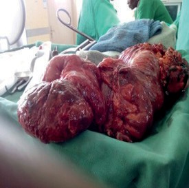 Figure 2 : Surgical specimen from subtotal colectomy for ileocecal intussusception prolapsed into the anus.