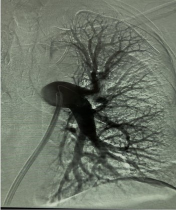 All patients were submitted to a preoperative pulmonary CT-SCAN, showing a large thrombus burden at main pulmonary arteries (figures 3 and 4).