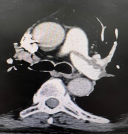 Figure 3: CT-Scan demonstrating large thrombus burden at left pulmonary artery