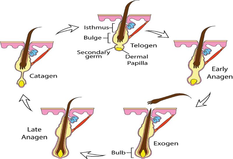 Figure 1: Hair follicle growth cycle and anatomy.