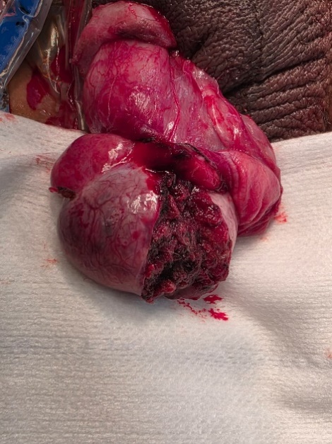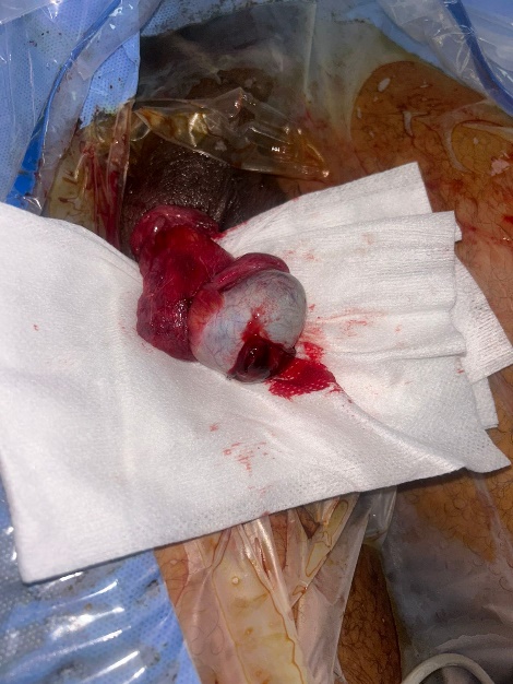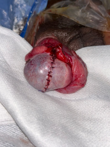 Figure 3: Intraoperative appearance of the testicle after evacuation of the hematoma and resection of the extruded testicular pulp.