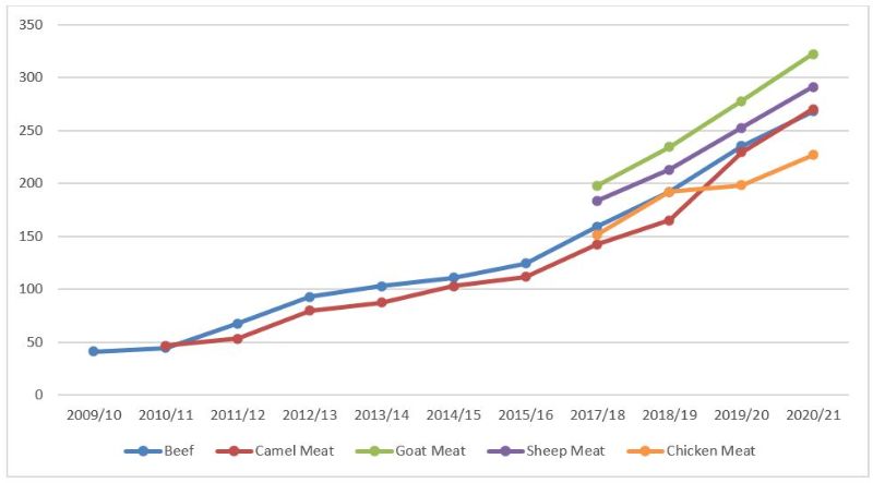 Figure 4: The meat price growth trends in Ethiopia by sourcing animal types