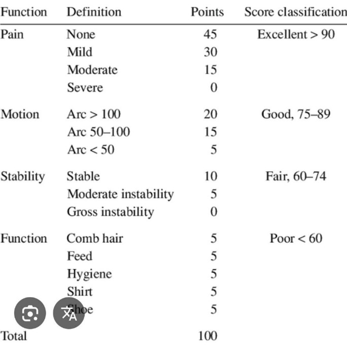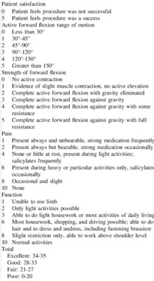 The functional outcome would be evaluated using UCLA shoulder score and MEPS score