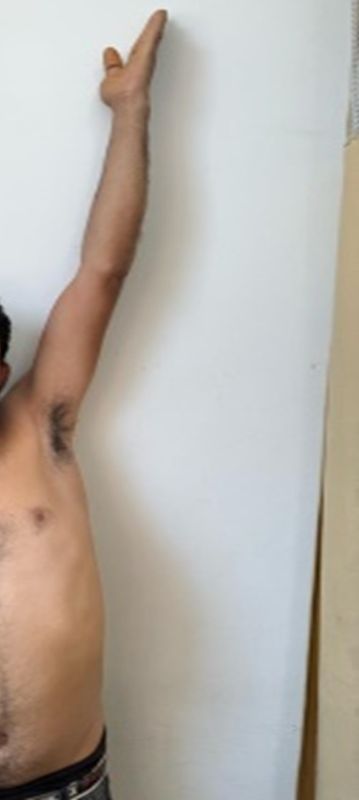 Arm was immobilized in a neck wrist sling or broad arm pouch for pain control in the first 5 days if necessary, mainly at night while sleeping. Stitches were removed on 12th post-operative day. The patients were advised to perform passive gentle limb range of motion exercises as their pain control permits. Immobilizer was removed after stitch removal. However they were informed to take out the limb and perform informed exercise for 8 to 10 times a day.