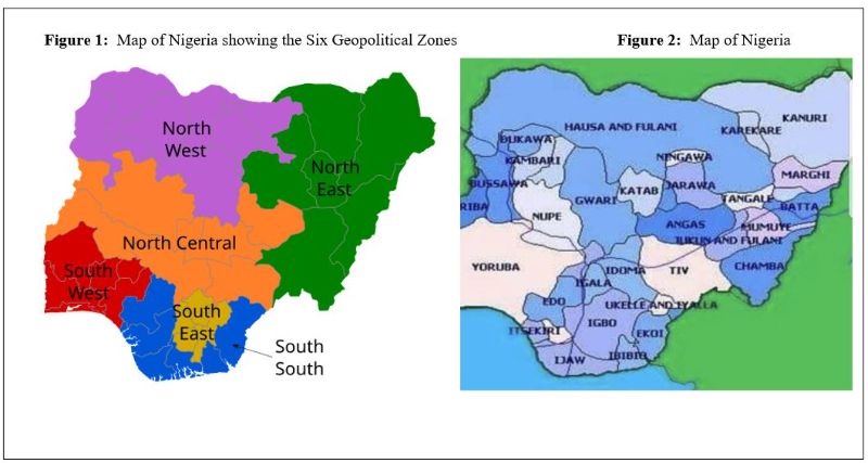Figure 1: Map of Nigeria showing the Six Geopolitical Zones Figure 2: Map of Nigeria