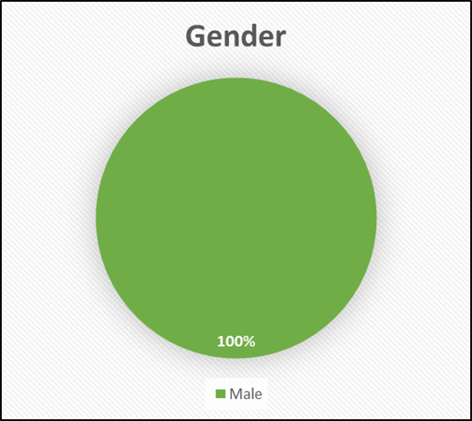 All participants in the study were male (100%), as the research was specifically designed to explore masculinity and its related aspects among adult men. Keeping the sample limited to men helped maintain consistency with the study’s focus and allowed for a more relevant and meaningful understanding of the variables being examined.